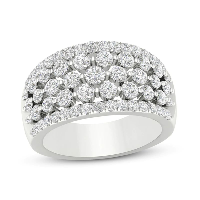 Astunningwaytoshowyourloveandaddsparkletoherfingerstack,thisexquisitediamondringforherfeaturesenchantingrowsoftwinklingdiamondsalongandinsidetheclassic14Kwhitegoldband.Theringhasatotaldiamondweightof2carats.